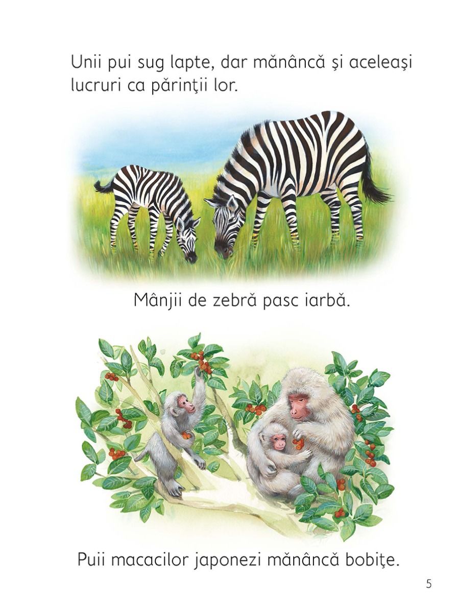 Ce mananca puii de animale? Care dintre ei ies din oua? Cine ii ocroteste si cum? Afla raspunsul la aceste intrebari si la multe altele intr-o carte dedicata puilor de animale.Volumul face parte dintr-o serie de carti despre natura destinate copiilor care incep sa citeasca singuri. Bogatia ilustratiilor si textul accesibil sunt potrivite pentru micii cititori, aflati la varsta cand descopera lumea.